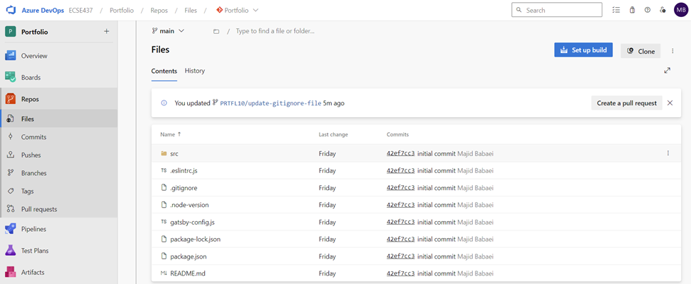 *Note: “<https://ECSE437@dev.azure.com/ECSE437/Portfolio/\\_git/Portfolio”> is the address on my project you need to use the address in your repo*