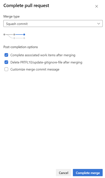 Click the *complete* and choose the best merging option. If you have made several commits to complete this issue (especially to address the feedback you have received), you’d better off squash the commits and don’t bring all of them to the history of the main branch! (*We will discuss the consequence of that during the lectures on VCS*)